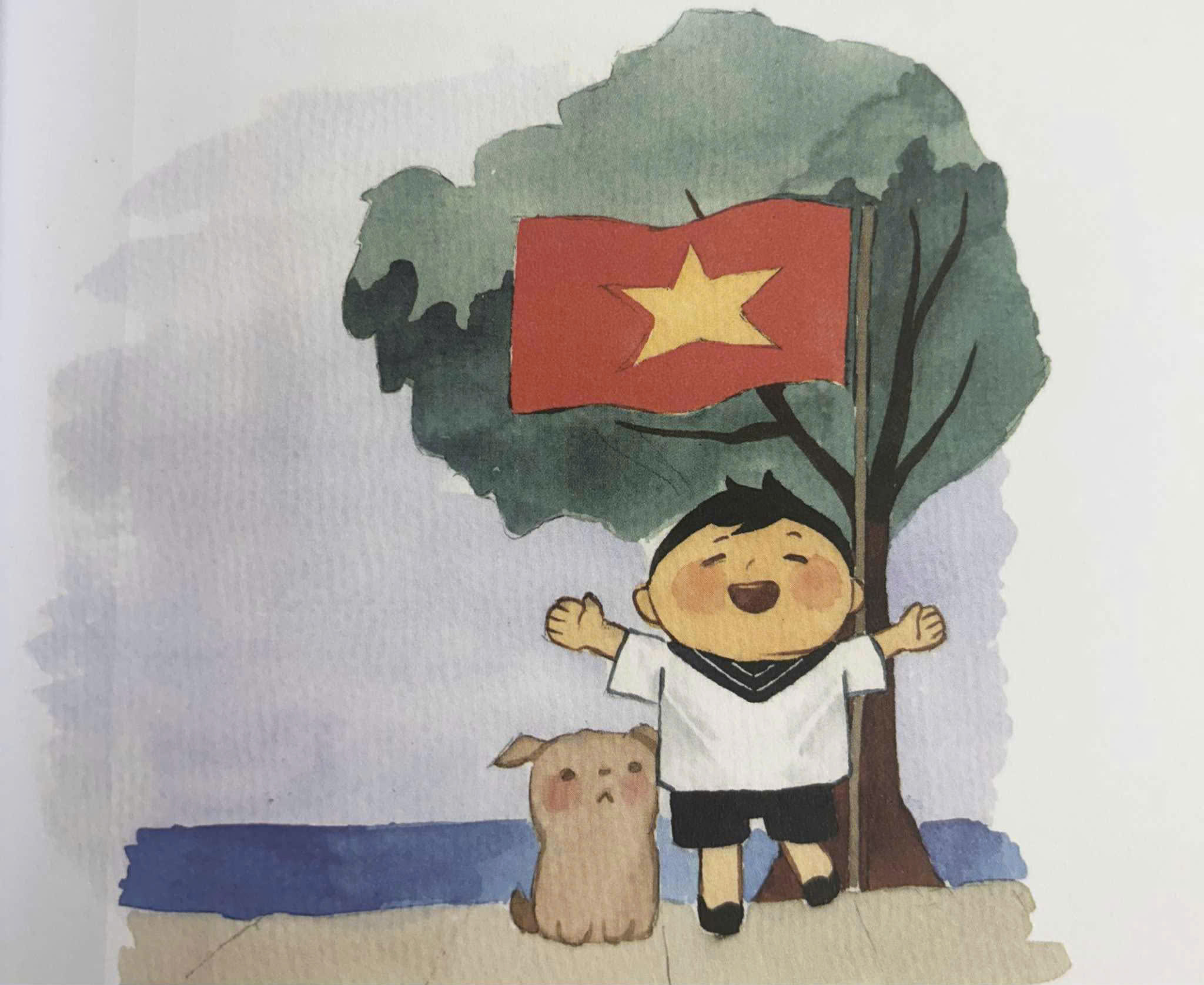 Xuyên suốt tập thơ, lá cờ đỏ sao vàng tung bay như biểu tượng của chủ quyền thiêng liêng, đồng thời là sợi chỉ đỏ gắn kết cảm xúc. Thiên nhiên Trường Sa qua đôi mắt trẻ thơ vừa hùng vĩ vừa tràn đầy sức sống: những cánh chim hải âu mạnh mẽ, cún con biết “ngắm” trái bàng, cá chuồn, cá heo tung tăng giữa sóng nước. Cậu bé áp tai nghe tiếng sóng trong vỏ ốc, da diết nhớ đảo mỗi khi trở về đất liền