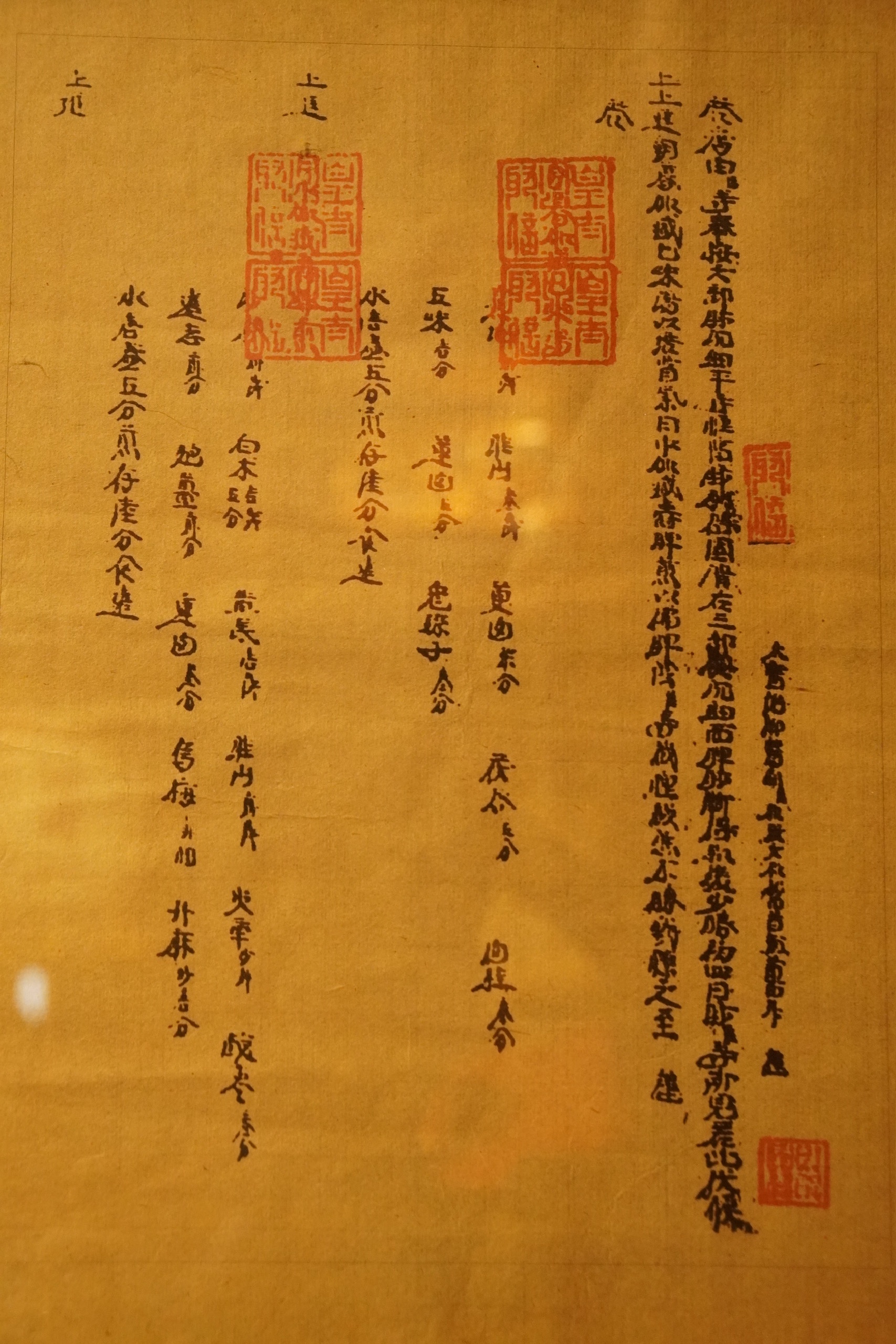 Bài thuốc do Ngự y phó Viện Thái y Đoàn Văn Hòa trình cho vua Gia Long (đề ngày mồng 6 tháng 11 năm Gia Long thứ 18, tức ngày 22.12.1819). Đây là thang thuốc thất vị có gia giảm, dùng vào buổi sáng và buổi chiều, để làm cho khí thận mạnh lên và thang thuốc thọ tỳ dùng trong ngày để tăng sức cho tỳ – Ảnh: Tuấn Kiệt