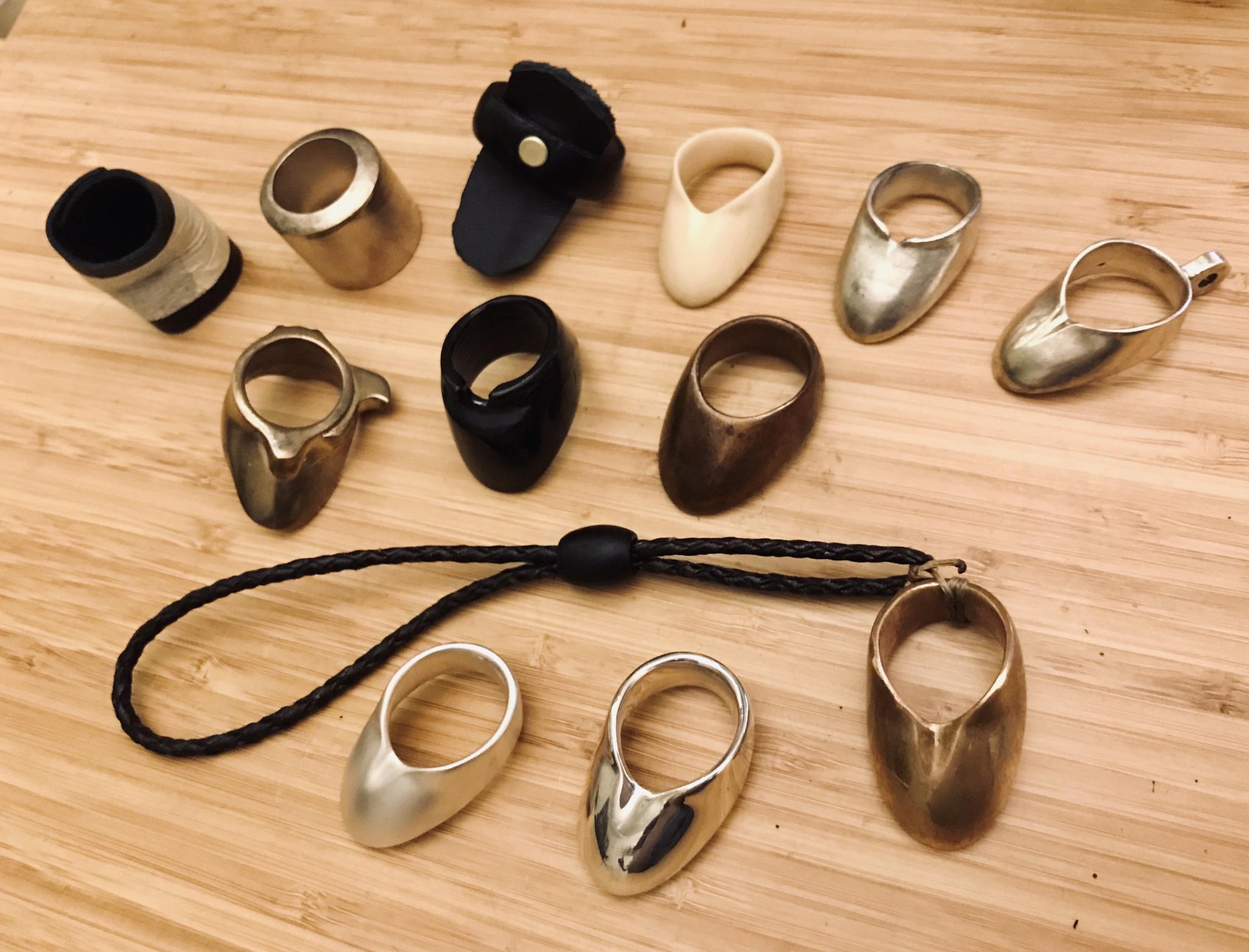 Các loại nhẫn bắn cung từ các chất liệu khác nhau: sừng, gỗ, kim loại, ngọc…