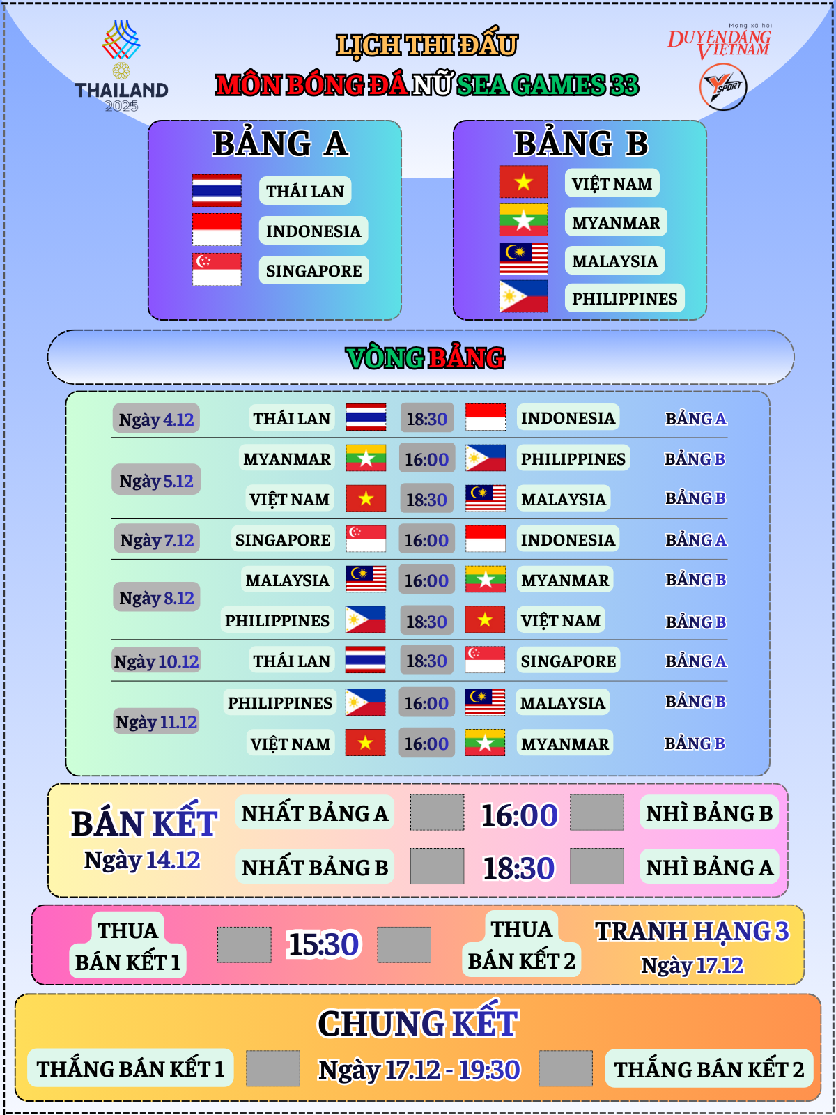 Lịch thi đấu môn bóng đá nữ SEA Games 33