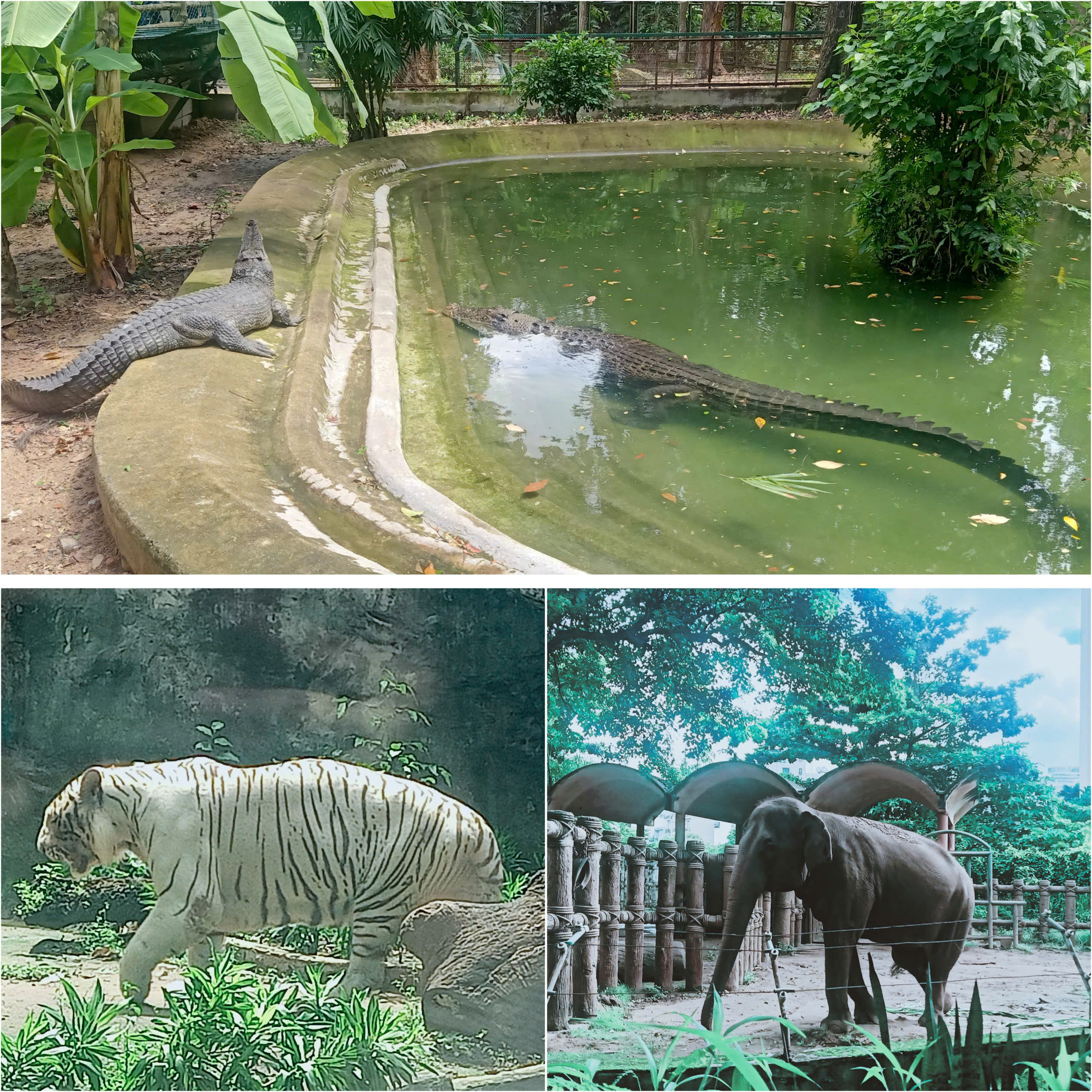 Tôi thích thú ngắm nhìn những con vật vô cùng dễ thương: những chú voi có cái vòi dài lắc lư qua lại, chân nhịp nhịp như đang nhún nhảy theo một giai điệu nào đó, những chú hươu cao cổ thì thong thả ăn lá trên những ngọn cây cao, những chú khỉ tinh nghịch, leo trèo từ cành này qua cành khác, chú cá sấu thì nằm trườn nhẹ nhàng dưới dòng nước mát lành,…