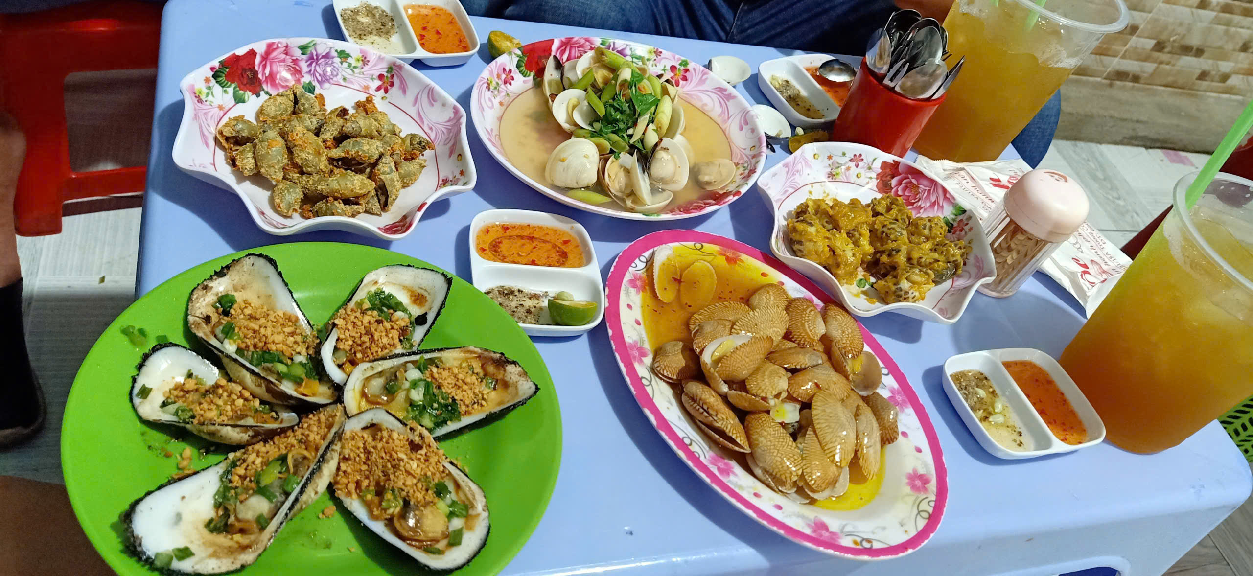 Tôi bị thu hút bởi hương thơm từ một quán ốc trong chợ. Còn gì vui vẻ và thích thú hơn khi được thưởng thức các món ốc ngon nổi tiếng của Sài Gòn trong một không gian mát mẻ về đêm. Tất tần tật các món ốc có thể kể đến như ốc mỡ xào me, sò lông nướng mỡ hành, ốc hương sốt bơ tỏi, nghêu hấp xả ớt,… đều ngon một cách lạ kỳ, khiến tôi “nghiền”, quên cả lối về. Mọi người đến đây không chỉ thưởng thức món ăn mà còn để tụ họp, quây quần trò chuyện tạo sự gắn kết và sẻ chia.