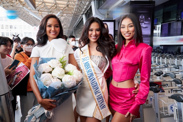 Bên cạnh đó, hàng loạt Hoa hậu, Á hậu nổi tiếng cũng có mặt tại sân bay Tân Sơn Nhất để ủng hộ và tiếp thêm tinh thần cho Kim Duyên. Hoa hậu Hoàn vũ Việt Nam 2017 – Top 5 Miss Universe 2018 – H’Hen Niê có mặt từ rất sớm để ủng hộ cho người em thân thiết và kỳ vọng đại diện Việt Nam sẽ đạt được thành tích tốt nhất, mang về niềm tự hào cho đất nước tại Miss Supranational. Á hậu Vũ Hoàng My và Người đẹp biển Hoa hậu Hoàn vũ Việt Nam 2022 – Ngô Bảo Ngọc cũng xuất hiện với thần thái rạng rỡ để ủng hộ cô nàng có một hành trình thật ý nghĩa và nhiều may mắn tại Ba Lan.