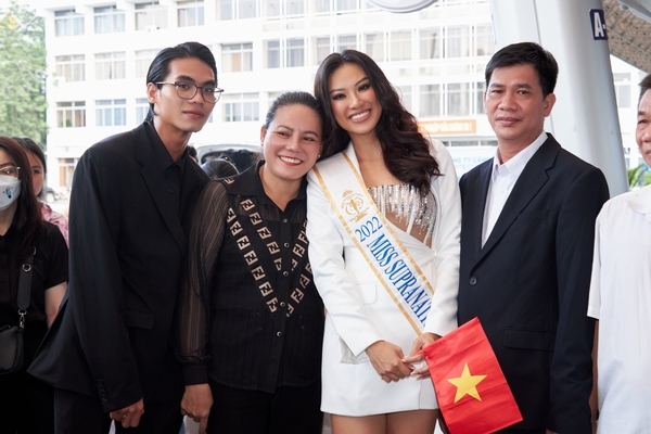 CEO Unimedia – Trần Việt Bảo Hoàng và CEO Leading Media – Phúc Nguyễn cũng xuất hiện tại sân bay và trao hoa cho nàng Á hậu, dặn dò và “tiếp thêm lửa” để người đẹp thật “bùng cháy” và tỏa sáng giữa dàn chiến binh khủng tại Miss Supranational 2022. Đặc biệt, gia đình Kim Duyên bao gồm ba, mẹ và em trai cô có mặt tại sân bay Tân Sơn Nhất để ủng hộ, trao gửi những cái ôm, lời động viên dành cho cô trước giờ máy bay cất cánh đến Ba Lan.