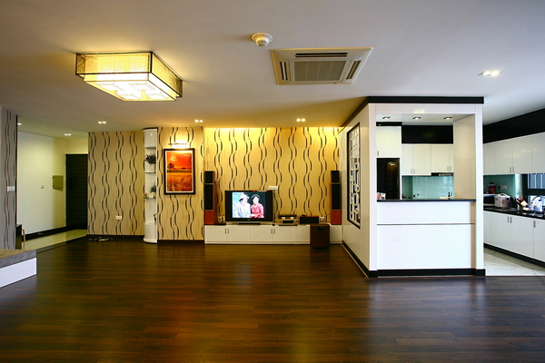 Khu vệ sinh phía ngoài được phá bỏ hoàn toàn, thế vào đó là nơi kê sofa của phòng khách. Phòng bếp được rút gọn lại, nhỏ mà vẫn đầy đủ, có sự kết nối hợp lý với phòng khách và bàn ăn kế bên. Các bức tường ngăn cách ở khu vực này được dỡ bỏ hoặc thay thế bằng các vách nhẹ, các hệ tủ – quầy bar ở bếp tạo nên một cảm giác thông thoáng. “Góc học tập” vô lý được cấu trúc lại bằng một công năng mới: Trở thành nơi đặt bàn thờ – rất trang trọng giữa nhà – là nhu cầu của thế hệ thứ nhất; cùng với hệ thống phòng kho để đồ. Cũng chính sự thay đổi này đã tạo nên hệ thống hành lang vào các phòng mạch lạc, hợp lý hơn nhiều so với hiện trạng. Vị trí đặt máy giặt được dời vào kế bên phòng vệ sinh của phòng ngủ trẻ, đưa sân phơi ra phía sau; dành vị trí lo-gia phía trước là khoảng mở ngắm cảnh cho phòng sinh hoạt chung và phòng ăn… Tất nhiên tất cả không thể là hoàn mỹ, ưu việt; bởi được cái này thì có thể sẽ phải mất cái kia. Nhưng điều cốt yếu là kiến trúc sư đã hoàn thành vai trò dung hoà được những nhu cầu, mong muốn của các thành viên trong gia đình.