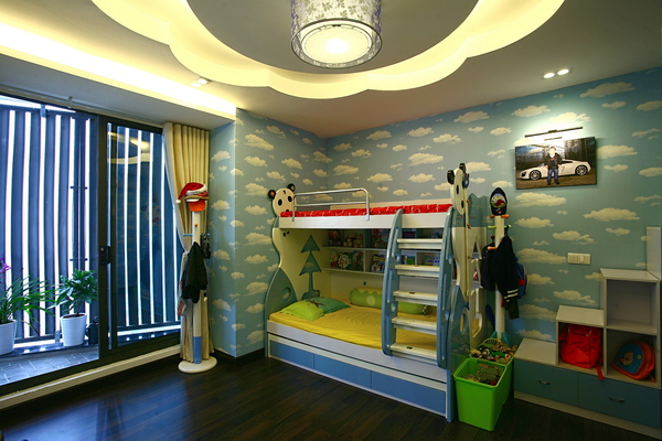 Phòng ngủ của hai thành viên nhí, với những gam màu vui nhộn.