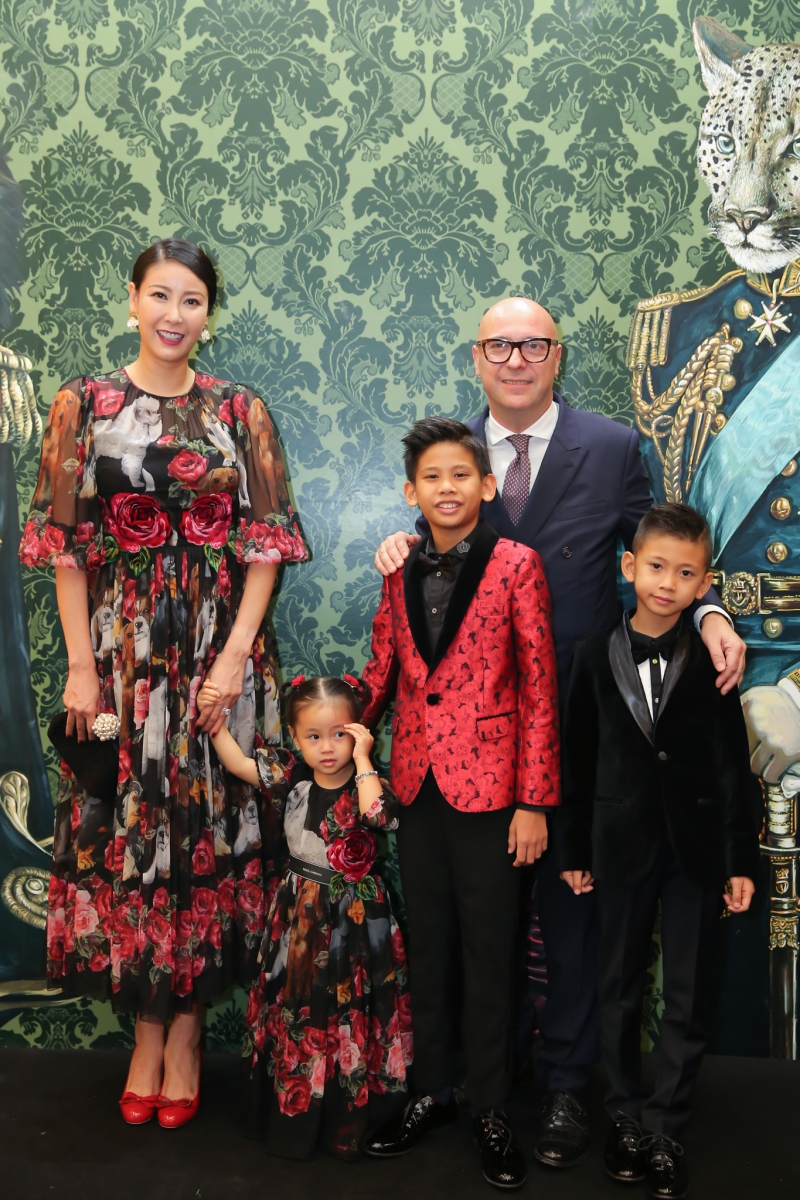Hoa hậu Hà Kiều Anh dự sự kiện cùng ba con đều mặc trang phục của Dolce & Gabbana