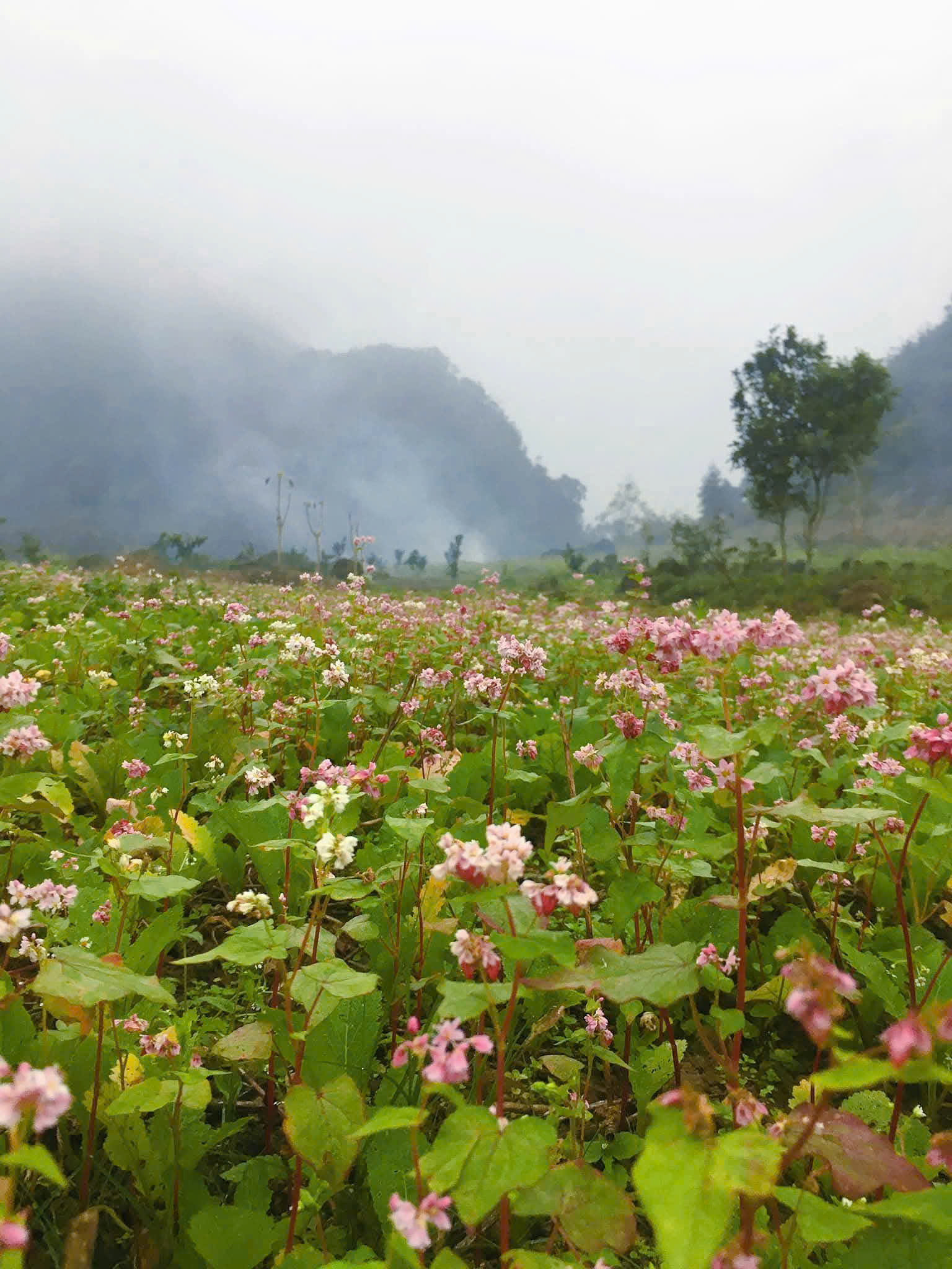 Những cánh đồng hoa tam giác mạch nở rộ trong màn sương sớm (Ảnh: HaoKhanh)
