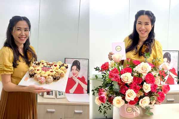 MC Quỳnh Hoa rạng rỡ khi được tặng bó hoa “khủng”: “Chúc chị em phụ nữ nhận được thật nhiều yêu thương trong ngày 20/10!”.