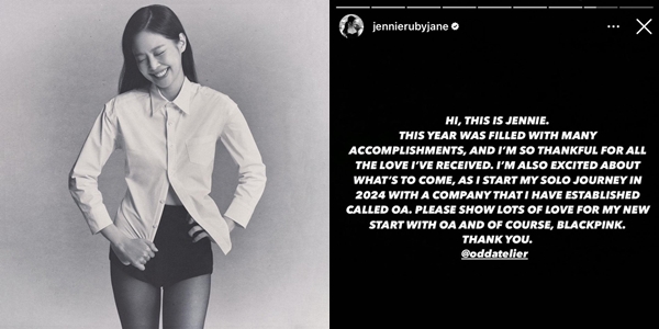 Jennie xác nhập lập công ty qua một bài đăng trên kênh Instagram với gần 83 triệu lượt theo dõi.