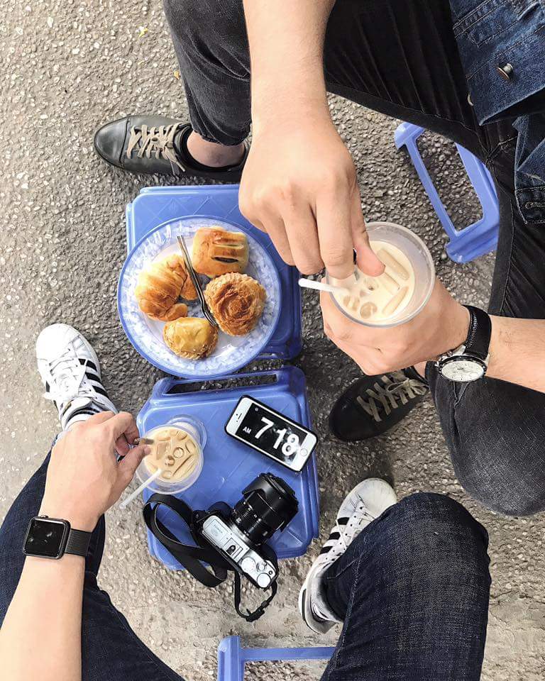 Cắn một miếng bánh mềm mịn, nhấp một ngụm sữa thơm béo, trò chuyện cùng nhau dưới tán cây rộng, ngắm lá me bay. Chỉ thế thôi là đủ cho buổi sáng trời đẹp, đủ để khám phá một Sài Gòn dung dị, đáng yêu.
