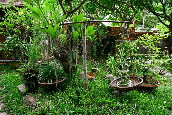 Cũng có thể không cần cầu kỳ với những món đồ nặng nề và có phần tốn kém, bạn hãy tự trang trí vườn của mình bằng những thứ gần gũi, giản dị và rẻ tiền hơn; như đồ gốm, hay một… đôi quang gánh, kết hợp với sắp đặt những chậu cây.