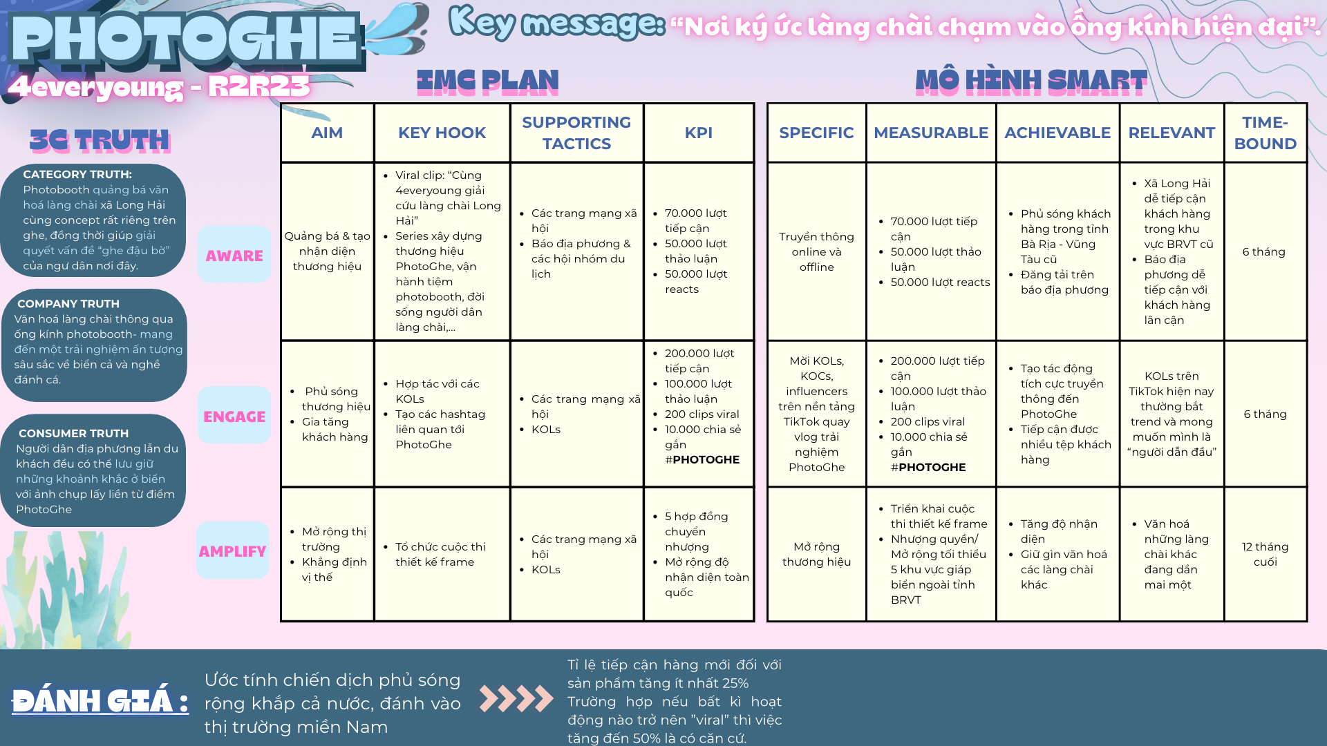 Xuất phát từ mong muốn lưu giữ vẻ đẹp mộc mạc của văn hóa làng chài ở xã Long Hải, nhóm 4everyoung đã nảy ra ý tưởng kinh doanh “Photoghe” vô cùng độc đáo. Họ mong muốn biến những chiếc xuồng, ghe quen thuộc của người dân làng chài thành buồng photobooth. Nếu được triển khai, dự án hứa hẹn sẽ trở thành một mô hình kinh doanh mang đậm bản sắc văn hóa, đồng thời là phương tiện giải trí mới lạ dành cho du khách.
