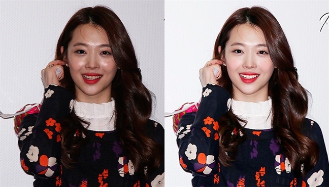 Làn da đen nhẻm, bóng nhờn của Sulli được “hoá phép” ảo diệu nhờ công nghệ làm ảnh chuyên nghiệp.