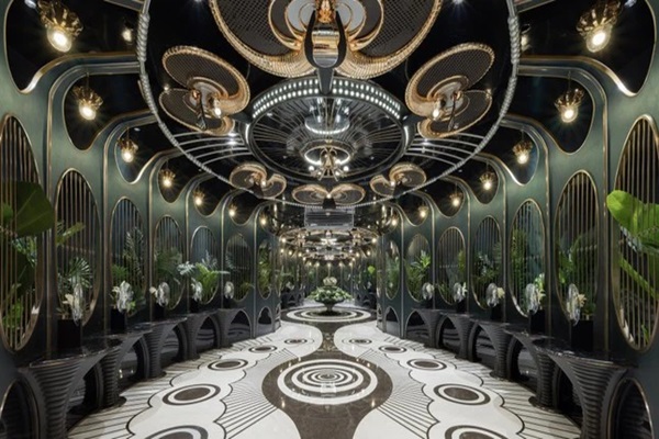 Bên cạnh đó, còn nhiều điều đáng chú ý mà nhà thiết kế này đã tinh tế đặt để các hình học trừu tượng kết hợp với hình dạng lấy cảm hứng từ hoa, côn trùng  kèm với nhiều dải đèn LED ở khắp các bức tường, nền gạch, trần nhà, … và cả những chiếc ghế sang trọng xung quanh khu vực.