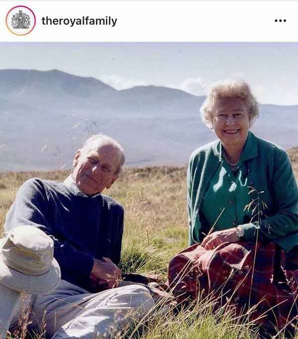 Trước khi tang lễ của Hoàng thân Philip được tổ chức vào hôm nay (17.4), Nữ hoàng Anh đã chia sẻ một bức ảnh bà chụp cùng ông ở vùng cao nguyên Scotland. Trong ảnh, cặp vợ chồng hoàng gia cười rất tươi khi nghỉ ngơi dưới ánh Mặt Trời, trên ngọn đồi Coyles của vùng Muick.