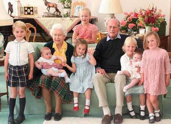 Nữ hoàng Anh và Hoàng thân Philip bên cạnh các chắt của mình