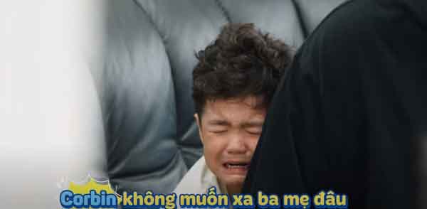 Khi biết mình phải rời xa bố mẹ, cậu nhóc Corbin đang vui vẻ liền rơm rớm nước mắt.