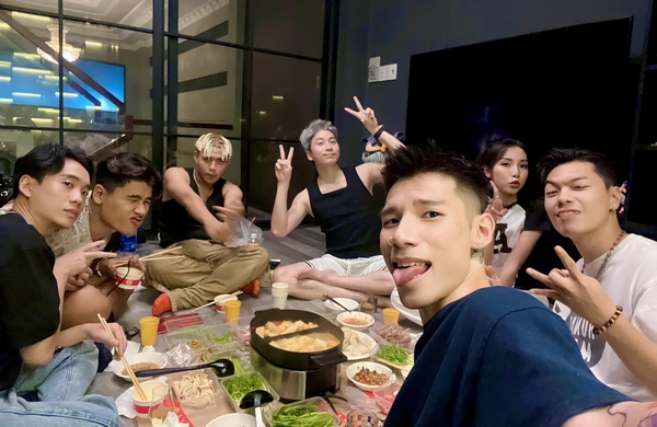 JustaTee khoe ảnh hội tụ cùng dàn rapper mùa 1 tại nhà Karik. Song, anh còn bày tỏ sự thích thú khi người đồng nghiệp thân thiết mời về nhà chơi sau một khoảng thời gian làm việc cùng.