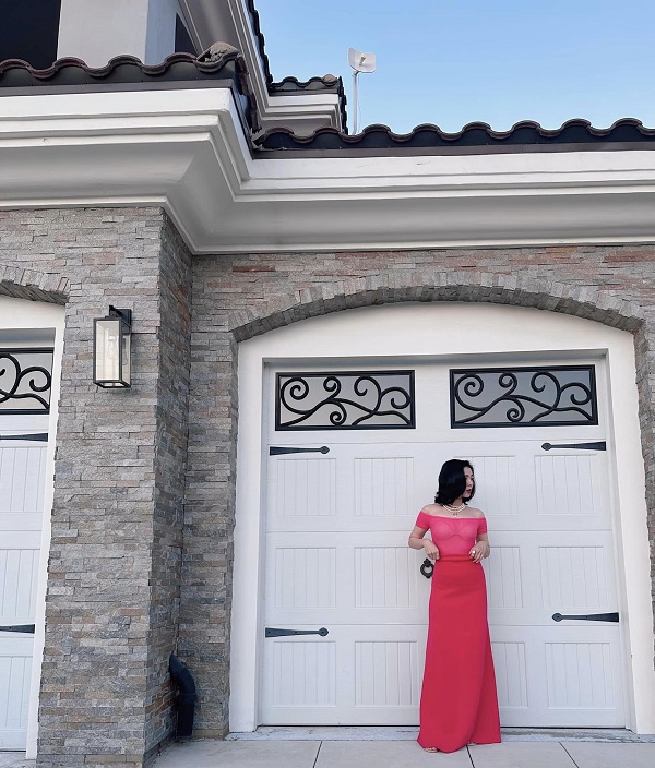 Lệ Quyên thả dáng trước căn biệt thự triệu đô ở Mỹ. Nữ ca sĩ và con trai đang trong chuyến nghỉ dưỡng trong dịp hè này.