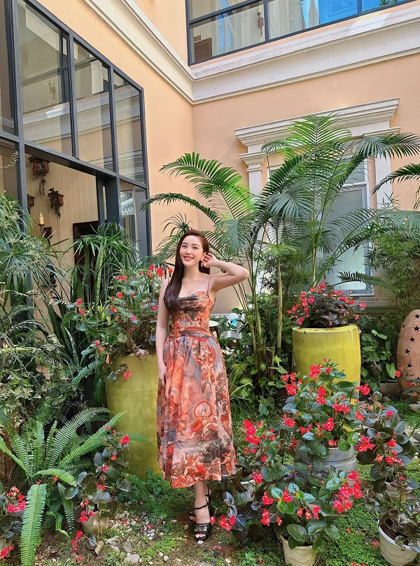 Bảo Thy khoe sắc nhẹ nhàng với trang phục đầm 2 dây.
