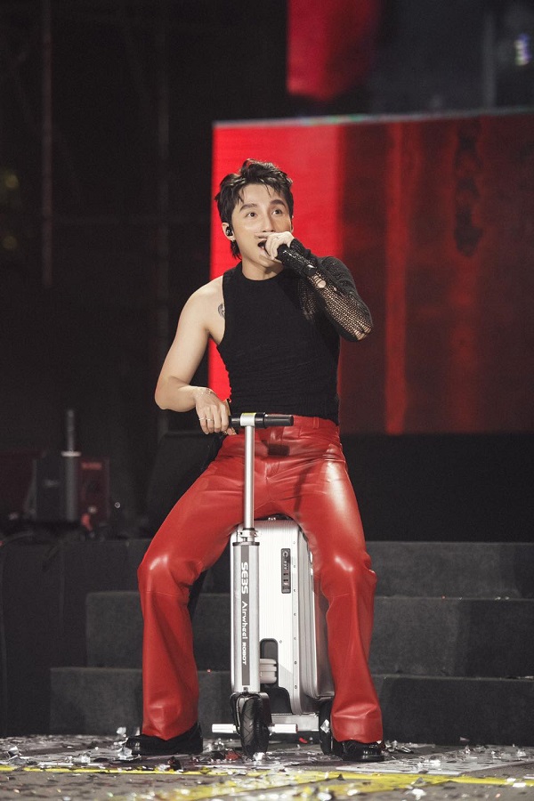 Theo kịp xu hướng, Sơn Tùng M-TP mang vali lên sân khấu trình diễn. Song, mốt áo ”một mất một còn” cũng khiến nhiều người phải bàn tán.
