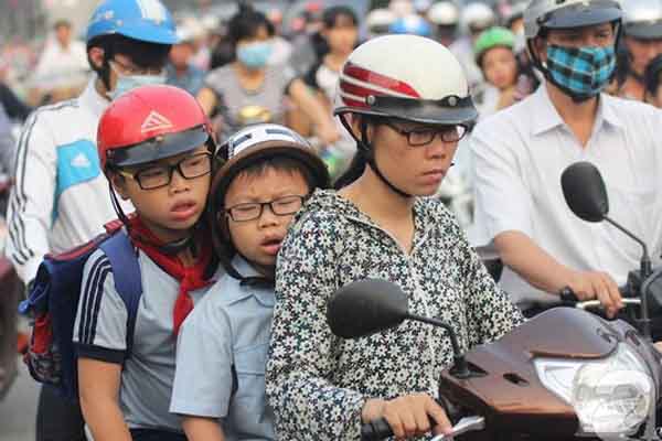 Tại các trường tiểu học ở TP Hồ Chí Minh, giờ yêu cầu học sinh phải có mặt ở trường là 6h30 cho đến 6h45 để chuẩn bị vào lớp lúc 7h hoặc 7h15. Do đó để có thể đến kịp thời gian này, các em phải dậy từ 5h30 sáng để chuẩn bị tất cả mọi thứ từ vệ sinh cá nhân, soạn sách vở cho đến ăn bữa sáng và ra xe đến trường. Hình ảnh các bạn nhỏ mặt mũi phờ phạc ăn vội ổ bánh mì, gói xôi hay thậm chí ngủ gật trên lưng bố mẹ vì thiếu ngủ khiến ai cũng xót xa. Hơn nữa, còn phần lo cho các em vì sợ ngã xuống đường rất dễ gây ra tai nạn.