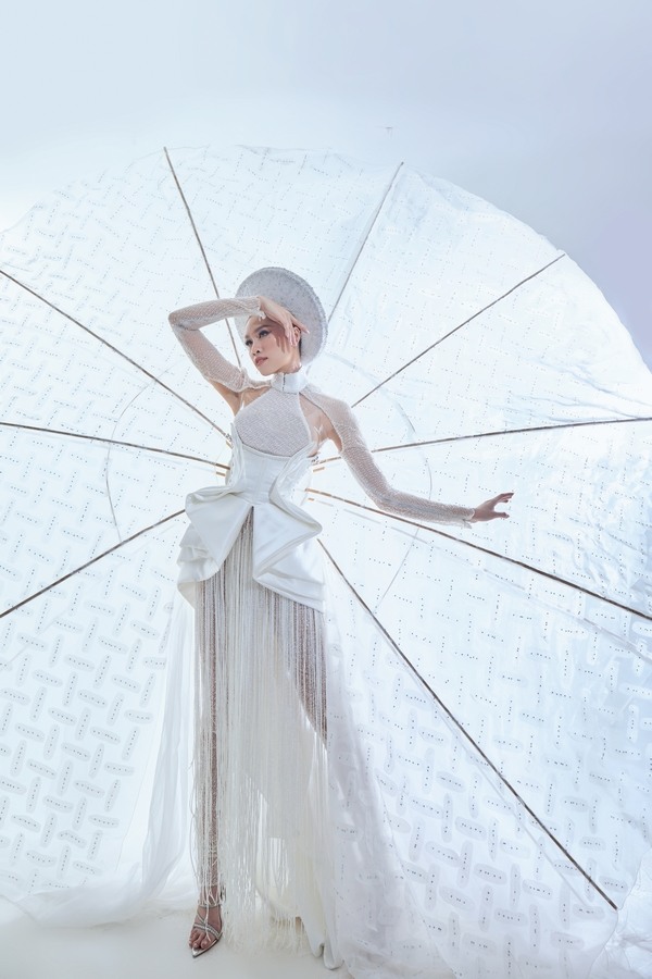 Trang phục dân tộc “Bánh tráng” độc đáo cũng được “MC 3000 chữ” diện tại đêm bán kết trong phần thi “National Costume”.