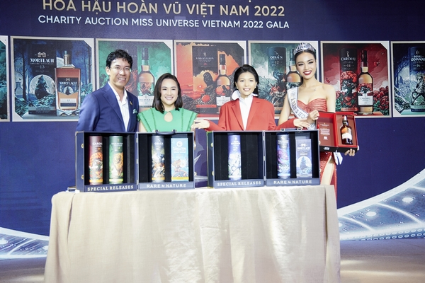 Vật phẩm đấu giá đầu tiên chính là bộ rượu 2021 Special Releases từ đơn vị Diageo gồm 1 set 8 chai rượu khác nhau thuộc về chị Luyến với số tiền đấu giá lên tới 200 triệu đồng.