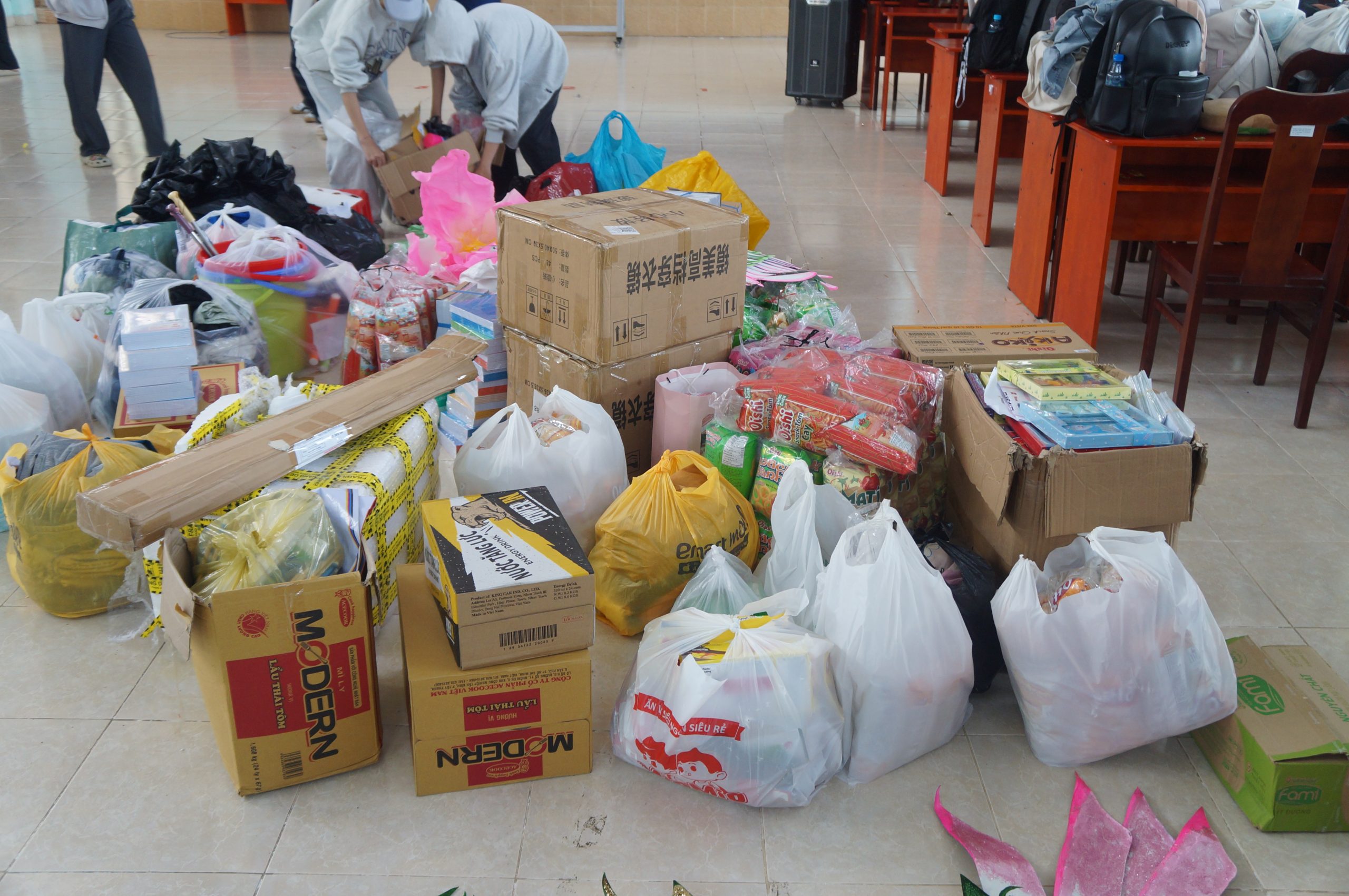 Những phần quà ý nghĩa được các bạn sinh viên dành tặng cho các em nhỏ – Ảnh: Trăng Yêu Thương