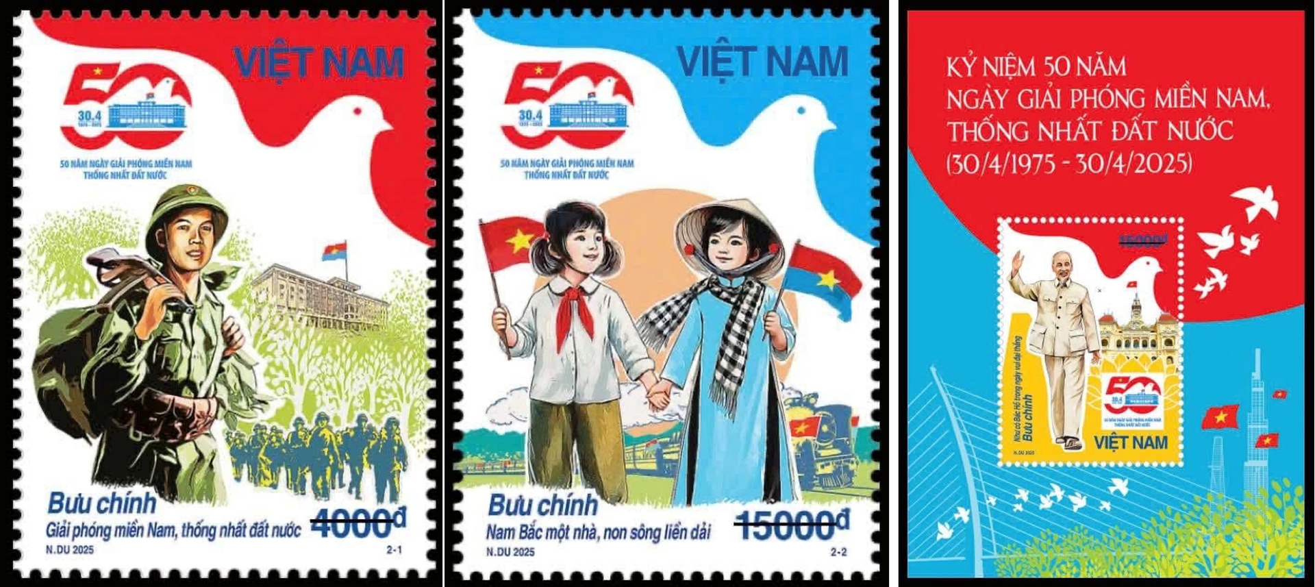 Hình ảnh bộ tem “Kỷ niệm 50 năm Ngày Giải phóng miền Nam, thống nhất đất nước” – Nguồn: Internet
