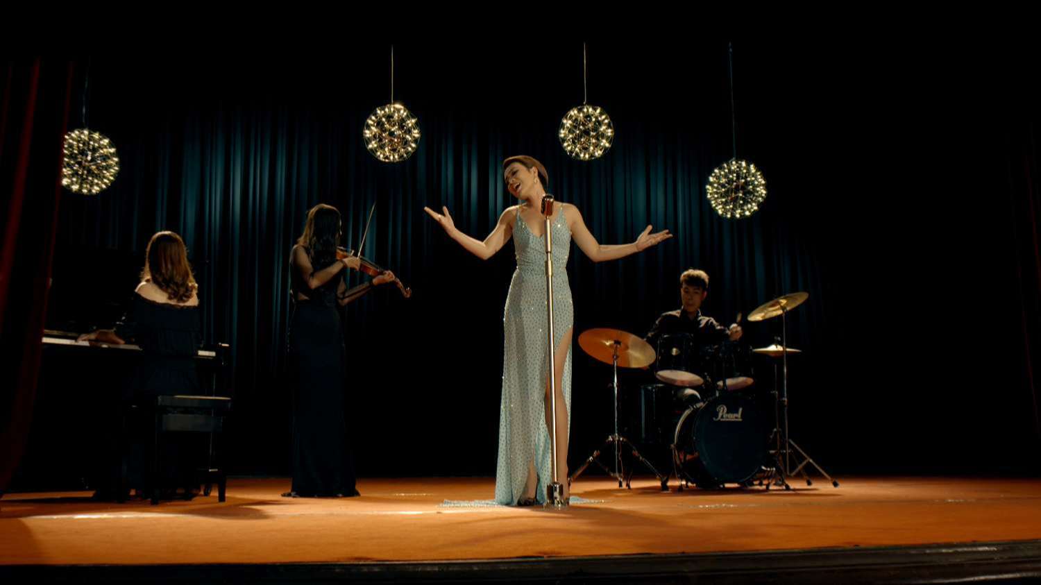MV Bài hát của em là một không gian đầy hoài niệm khi lấy bối cảnh một nhà hát bỏ hoang, trong đó, khán giả sẽ bắt gặp kho nhạc cụ cũ, giấy nhạc đã ố màu và khán phòng với những hàng ghế trống. Không gian như muốn đưa khán giả tìm gặp lại những ký ức của mình.
